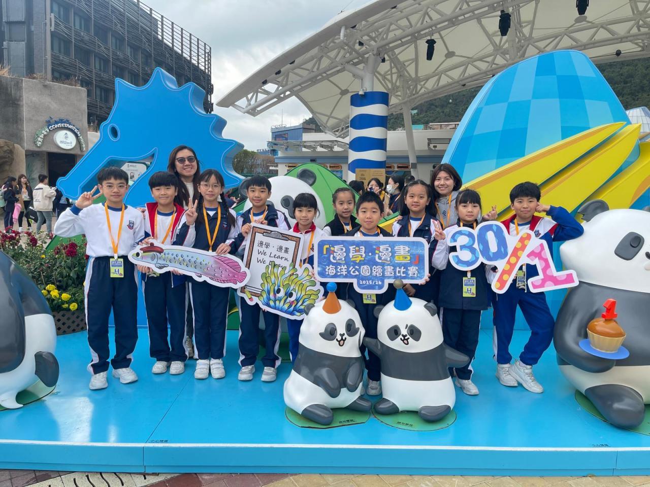 十位二至六年級的同學代表學校參加「邊學邊畫海洋公園繪畫比賽」,透過細心的觀察和獨特的視角,運用顏料和創意描繪生命的色彩,期望向觀眾展現各位小小藝術家眼中的精彩世界。