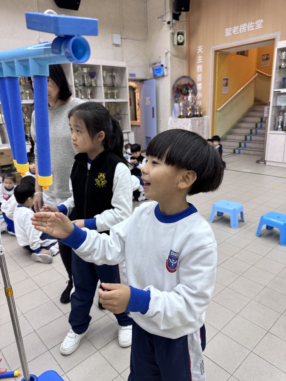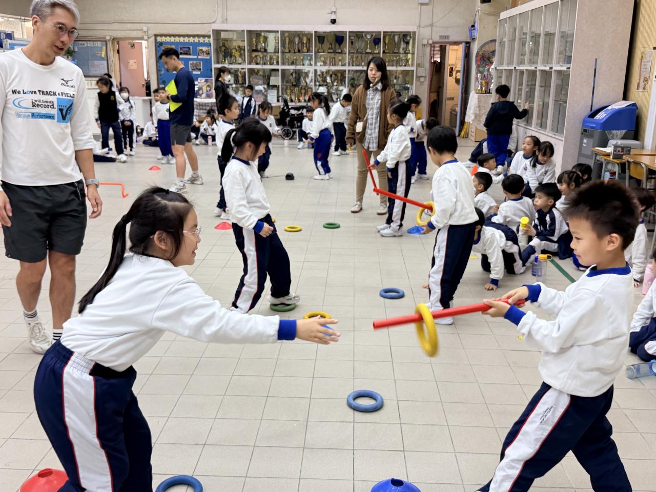 體育組於12月11日為一年級學生進行了基礎活動大挑戰活動。當中,學生體驗了多種基礎活動的挑戰,包括擲、拋、跳、跑。活動中更結合了不同電子器材,使活動更有趣味及刺激。