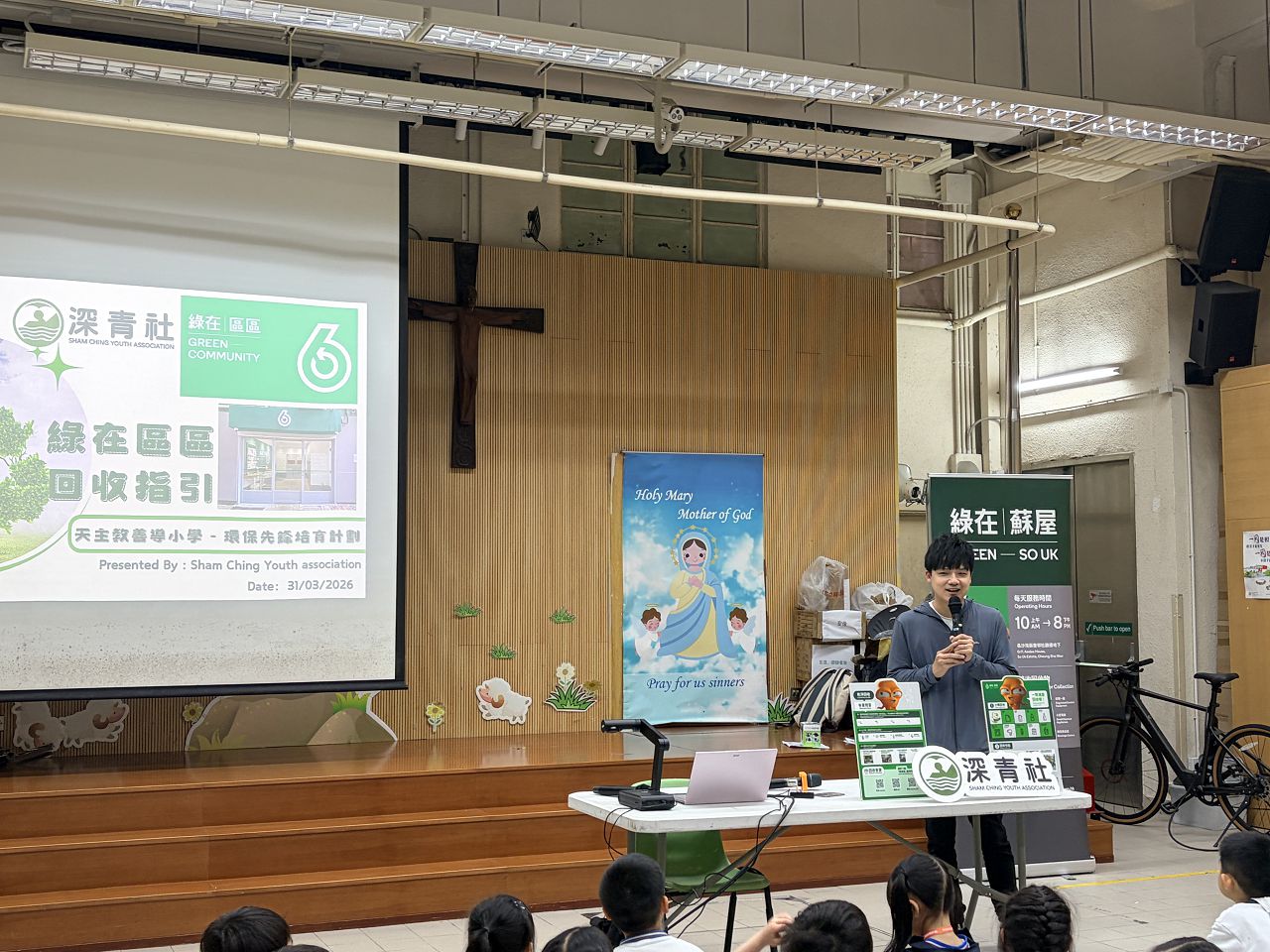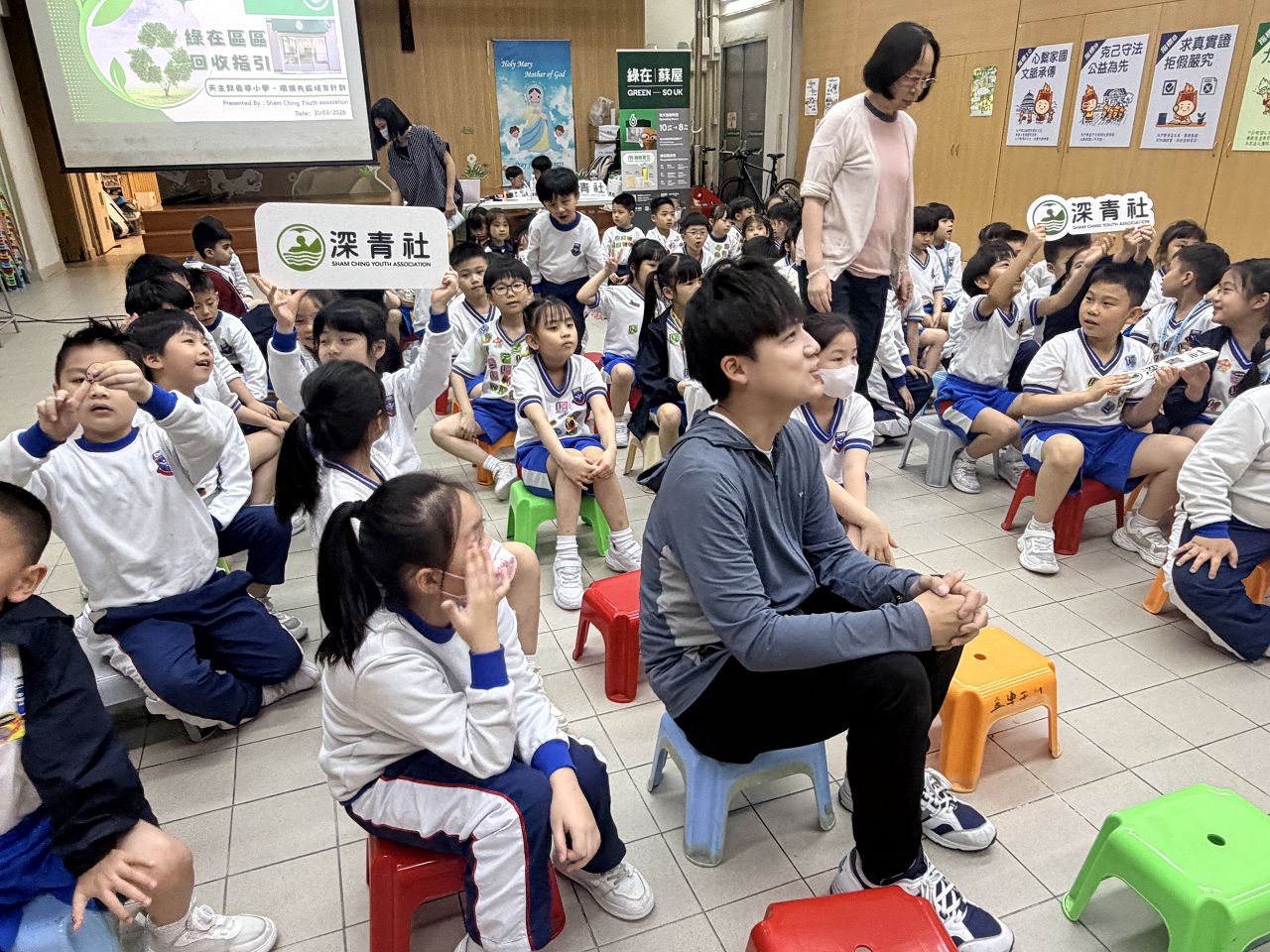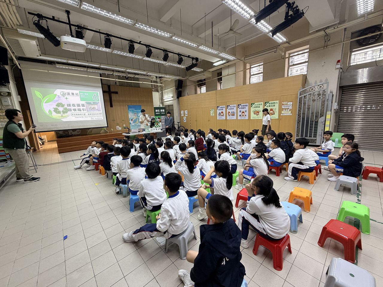 透過活動建立一年級學生的環保意識及宣傳環保概念。分別透過「建立環保意識與目的」講座,讓學生認識回收的基本原則。講座後,學生分組進行分類回收實戰及廁紙筒迴力車活動,提升學生源頭減廢及知悉綠在區區的服務。