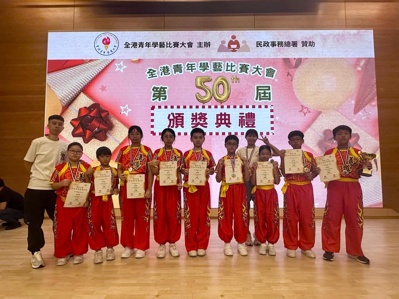 本校醒獅隊於第50屆全港青年學藝比賽全港青年醒獅比賽 (2024-25年度)小學地青規定組奪得 亞 軍,隊員們的表現和努力獲得評判肯定。學生們將繼續努力,積極向學弟妹分享各項獅藝技巧與比賽經驗,實現薪火相傳。