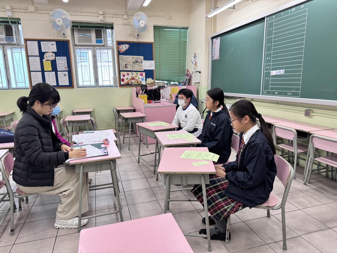 本校為六年級學生進行升中模擬面試,旨在提升他們的信心及應變能力,幫助他們在真實的升中面試中能自信表達、突出優點。祝願同學們都能考獲心儀中學,加油!