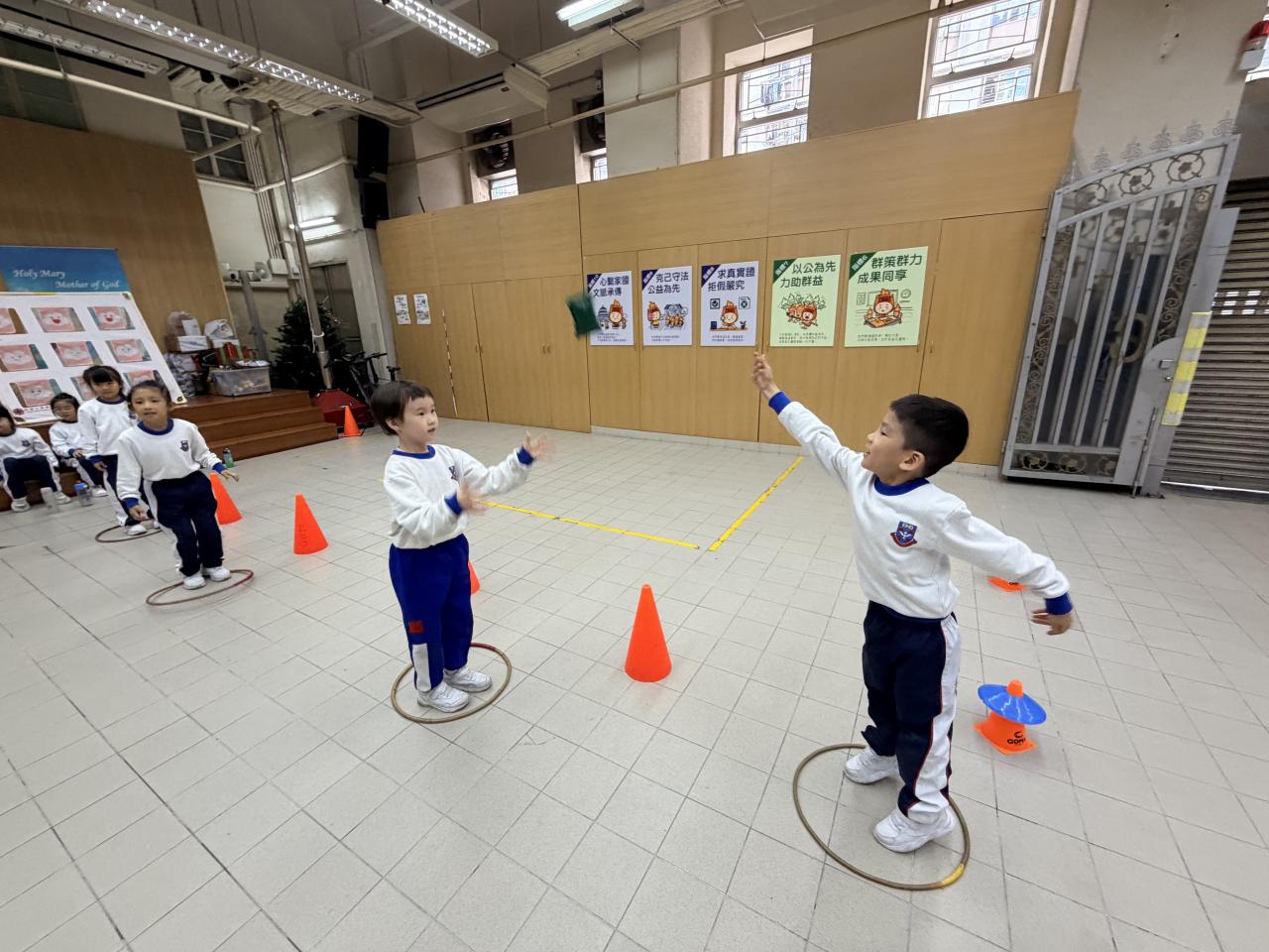 體育組於12月11日為一年級學生進行了基礎活動大挑戰活動。當中,學生體驗了多種基礎活動的挑戰,包括擲、拋、跳、跑。活動中更結合了不同電子器材,使活動更有趣味及刺激。