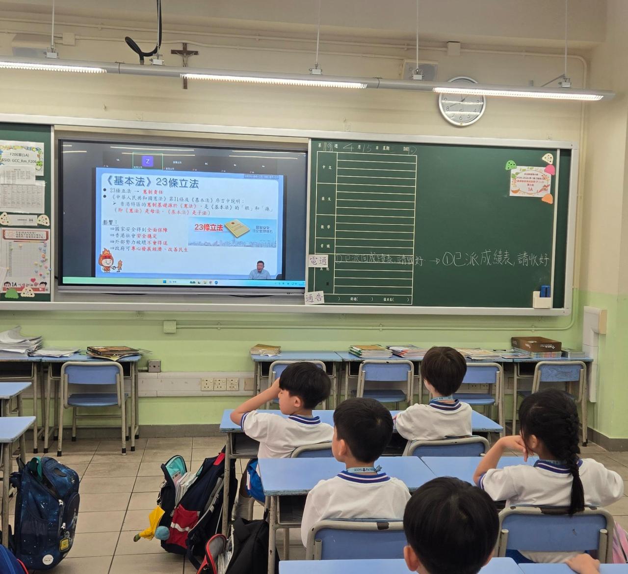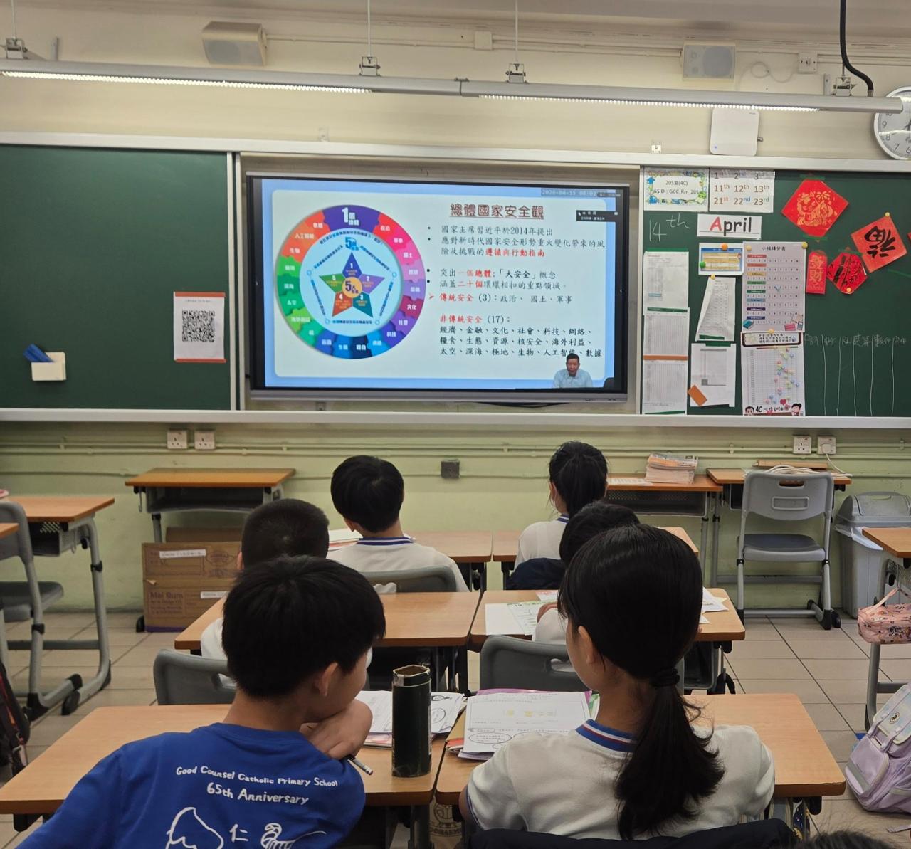 4月15日是國家安全教育日,方校長當天於早會時與學生分享國家安全及《國安法》的由來,旨在透過活動提高學生的國家安全意識,加強培養國民身份認同。並讓學生瞭解國家安全及《國安法》與我們的生活息息相關,加強學生要維護國家安全的認識。