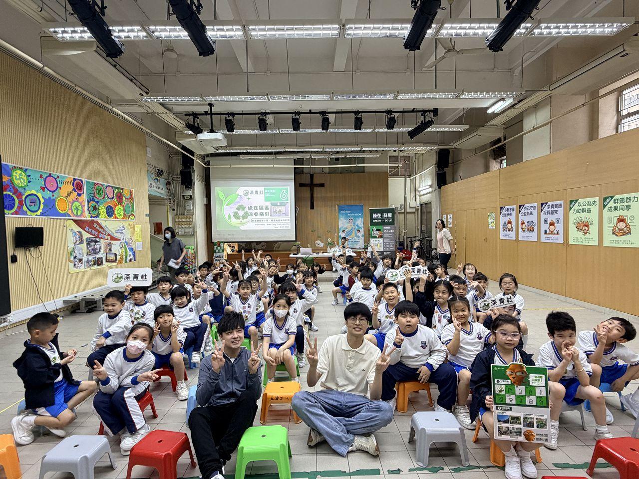 透過活動建立一年級學生的環保意識及宣傳環保概念。分別透過「建立環保意識與目的」講座,讓學生認識回收的基本原則。講座後,學生分組進行分類回收實戰及廁紙筒迴力車活動,提升學生源頭減廢及知悉綠在區區的服務。