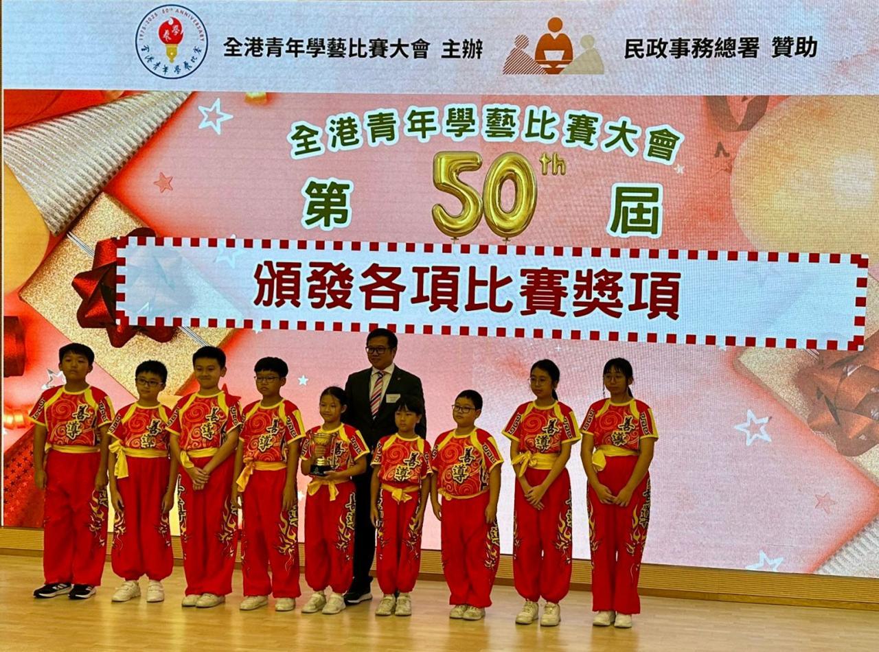 本校醒獅隊於第50屆全港青年學藝比賽全港青年醒獅比賽 (2024-25年度)小學地青規定組奪得 亞 軍,隊員們的表現和努力獲得評判肯定。學生們將繼續努力,積極向學弟妹分享各項獅藝技巧與比賽經驗,實現薪火相傳。